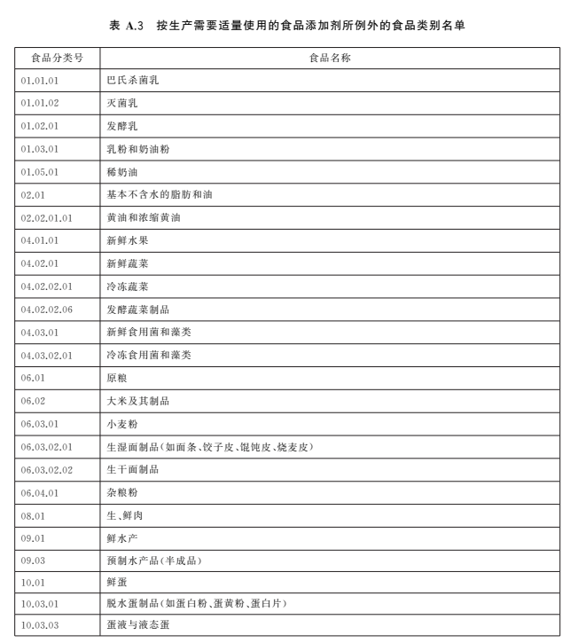 2.按生產(chǎn)需要適量使用的食品添加劑所例外的食品類別名單