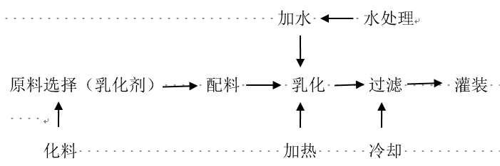 ①原料、食品添加劑選擇,② 配料,③ 乳化條件,④加水量(加水型)